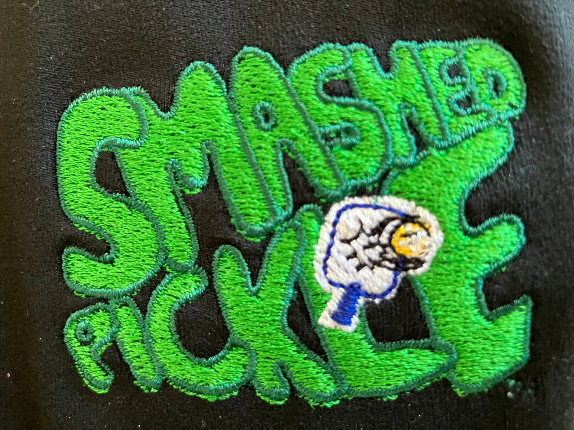 This item includes the dashing Smashed Pickle with paddle logo. (Not pickle with wine logo as shown in the second image.)
